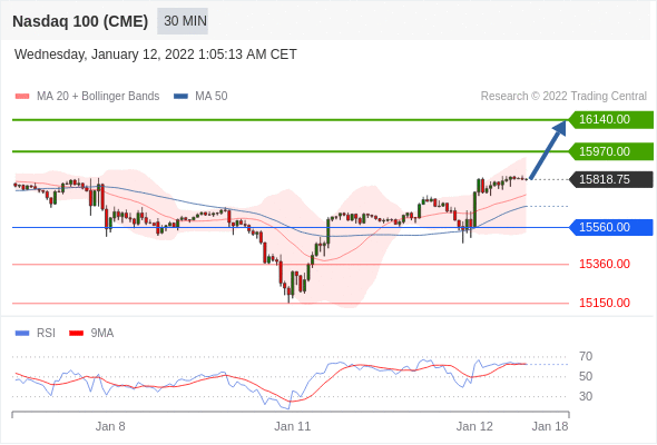 Long positions above 15560.00 with targets at 15970.00 & 16140.00 in extension.