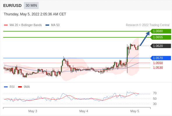 Long positions above 1.0570 with targets at 1.0655 & 1.0680 in extension.