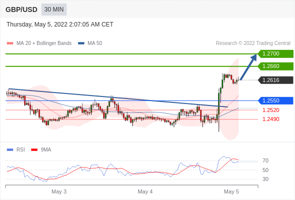 Long positions above 1.2550 with targets at 1.2660 & 1.2700 in extension.