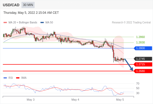Short positions below 1.2800 with targets at 1.2715 & 1.2680 in extension.