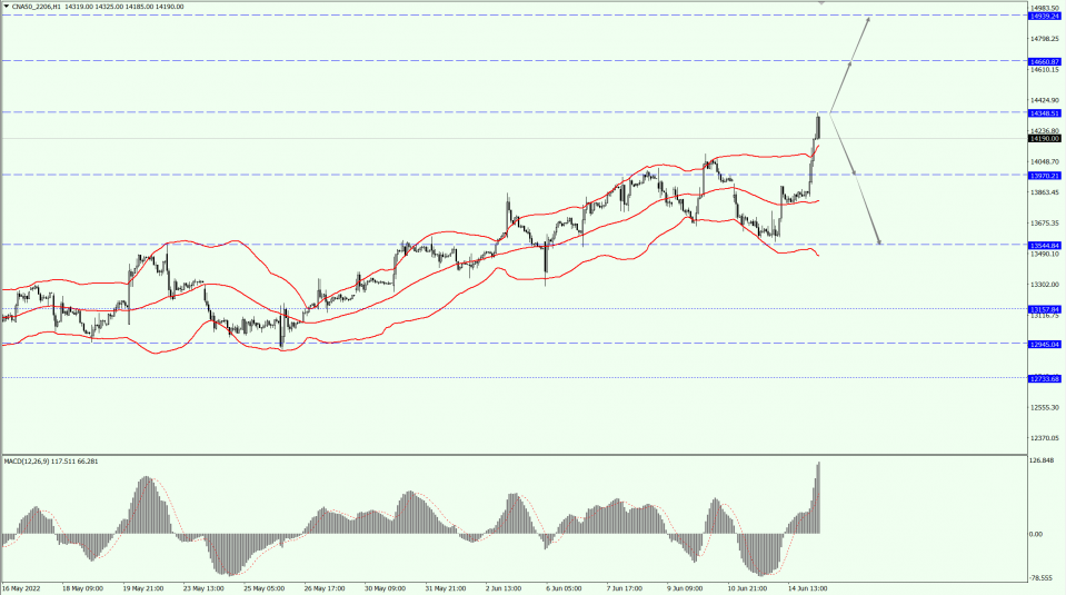 FTSE China A50 focuses on the 14348-line today. If the A50 runs stably below the 14348-line, it will pay attention to the support strength of the two positions of 13970 and 13544. If the A50 runs above the 14348-line, it will open up further upward space. At that time, pay attention to the two positions of 14660 and 14939.