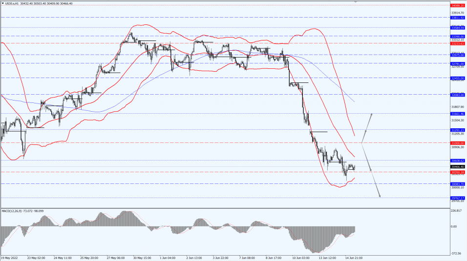 The Dow focuses on the 31,000-line today. If the Dow runs steadily below the 31,000-line, it will pay attention to the support strength of the 30350 and 29767 positions. If the Dow rises above the 31,000-line, it will pay attention to the suppression strength of the 31291 and 31661 positions.