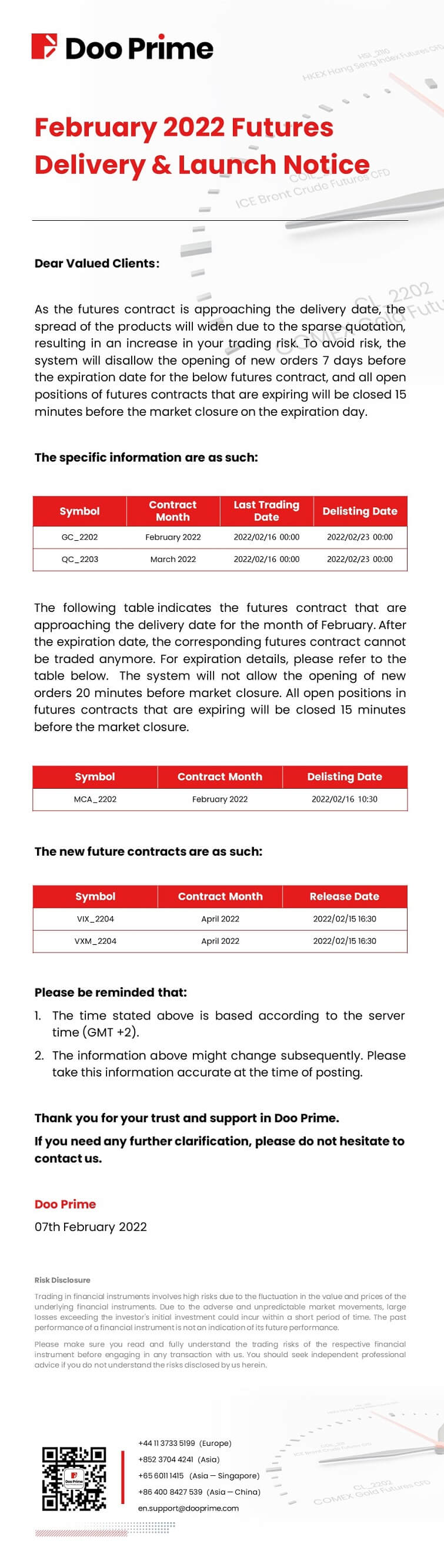 Doo Prime February 2022 Futures Launch Notice