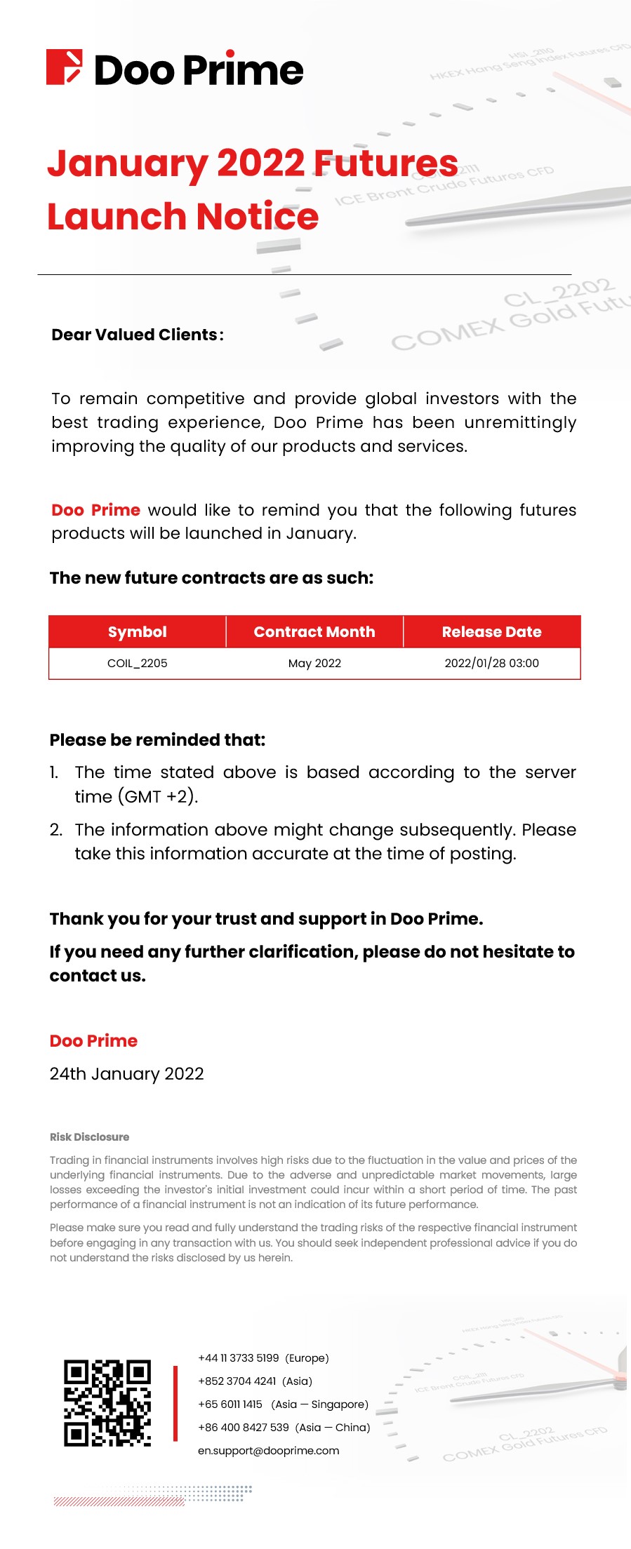 Doo Prime January 2022 Futures Launch Notice