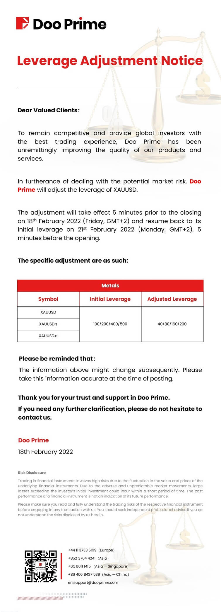 2022-02-18 | Leverage Adjustment Notice