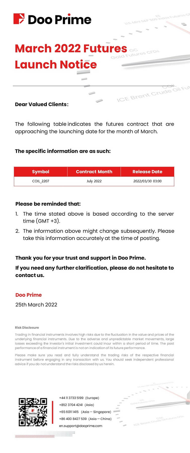 Doo Prime March 2022 Futures Launch Notice