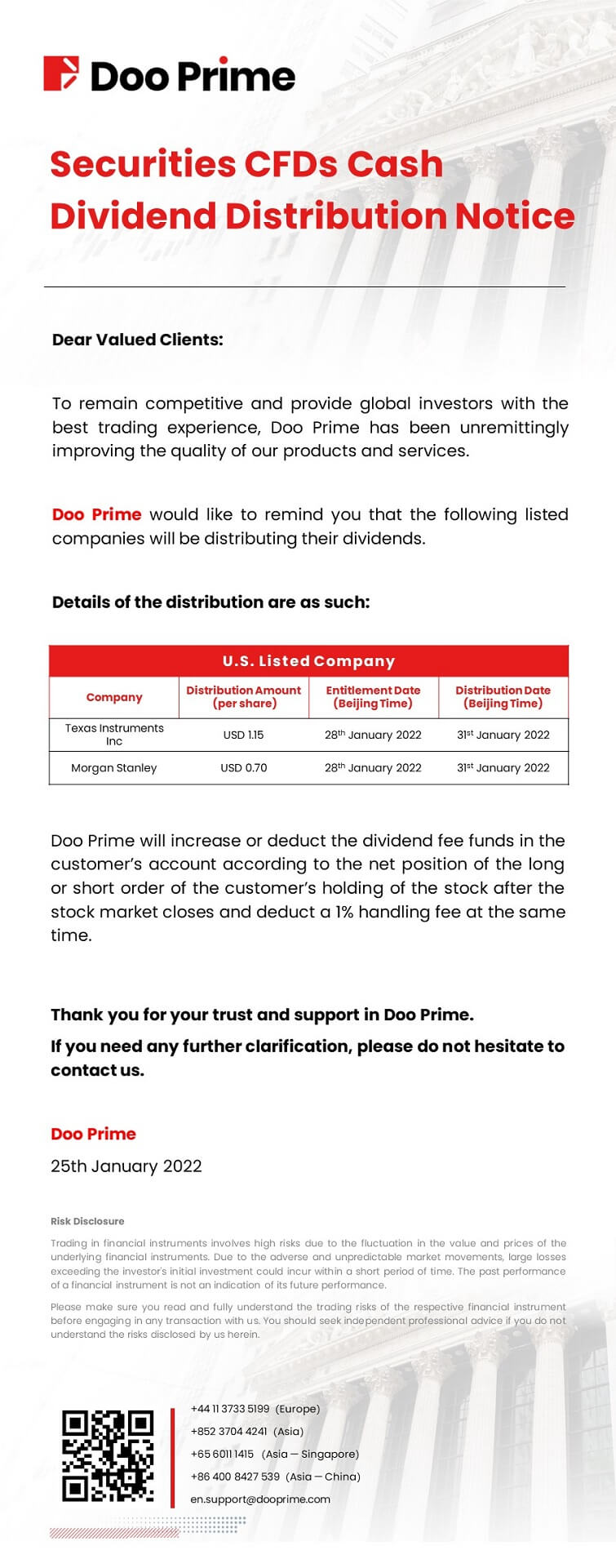 2022-01-25 | Securities CFDs Cash Dividend Distribution