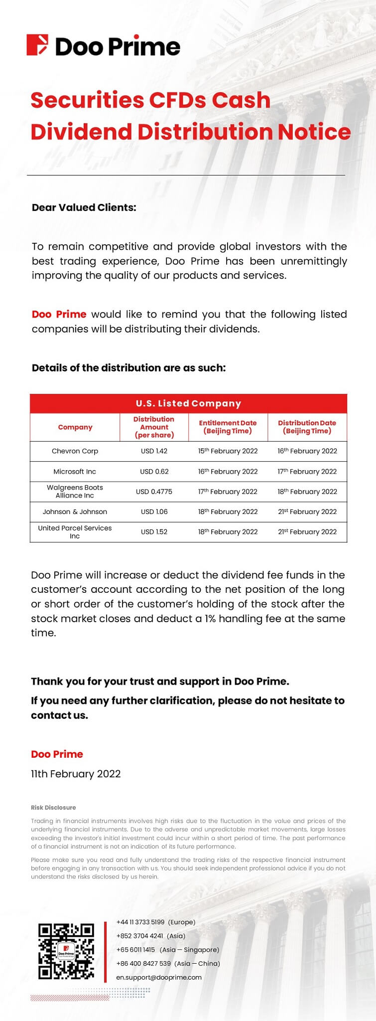 2022-02-11 | Securities CFDs Cash Dividend Distribution