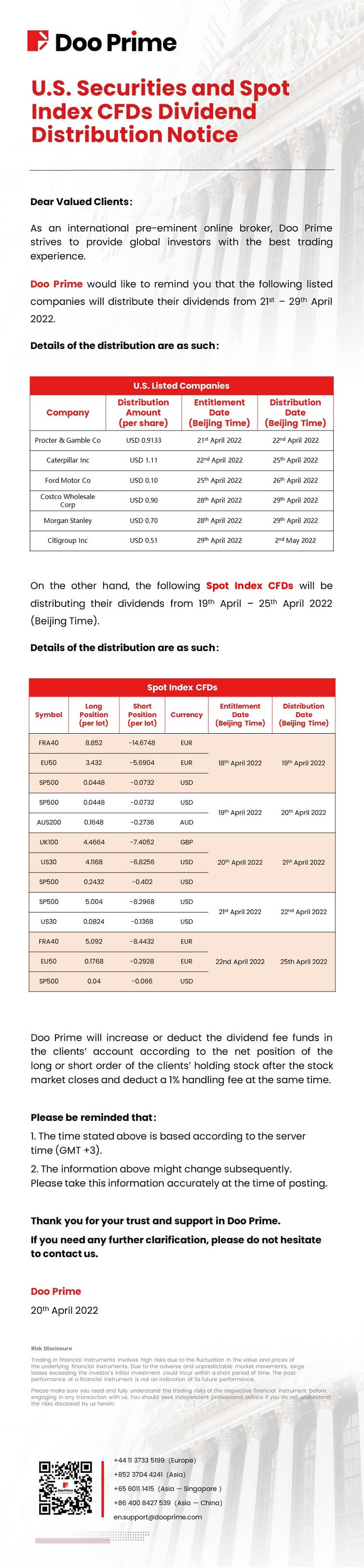 2022-04-20 | Dividend Distribution Noitce , Securities , Spot Indices