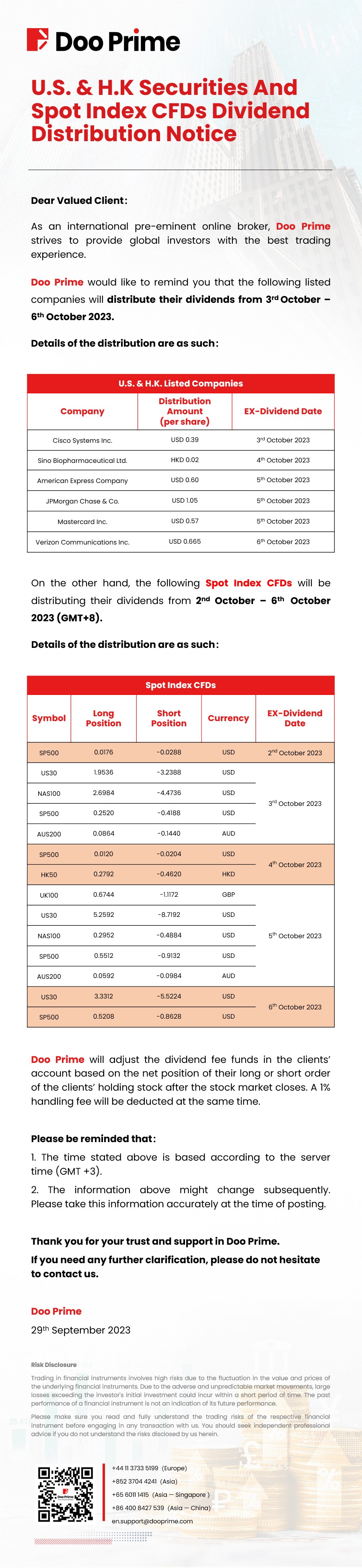 2023-09-29 | Dividend Distribution Notice , Securities , Spot Index