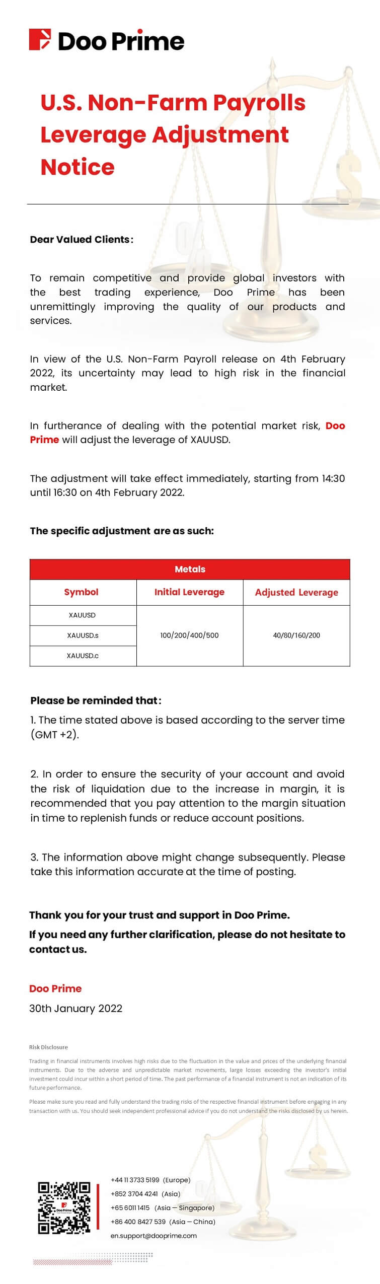 2022-01-30 | Leverage Adjustment Notice , U.S. Non-Farm Payrolls Leverage Adjustment