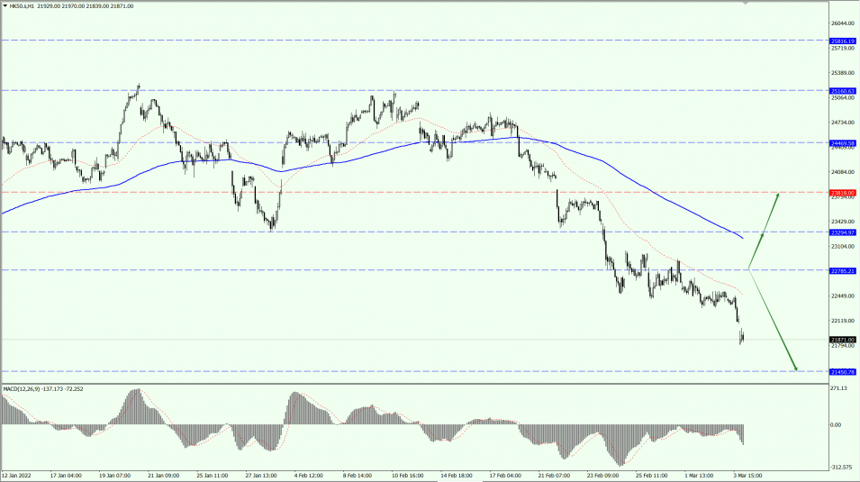HK50 Index focuses on the 22785-line today. If HK50 can run stably above the 22785-line, then pay attention to the suppression strength of the two positions of 23294 and 23818. If the HK50 strength breaks below the 22785-line, then pay attention to the support of the 21450-line.
