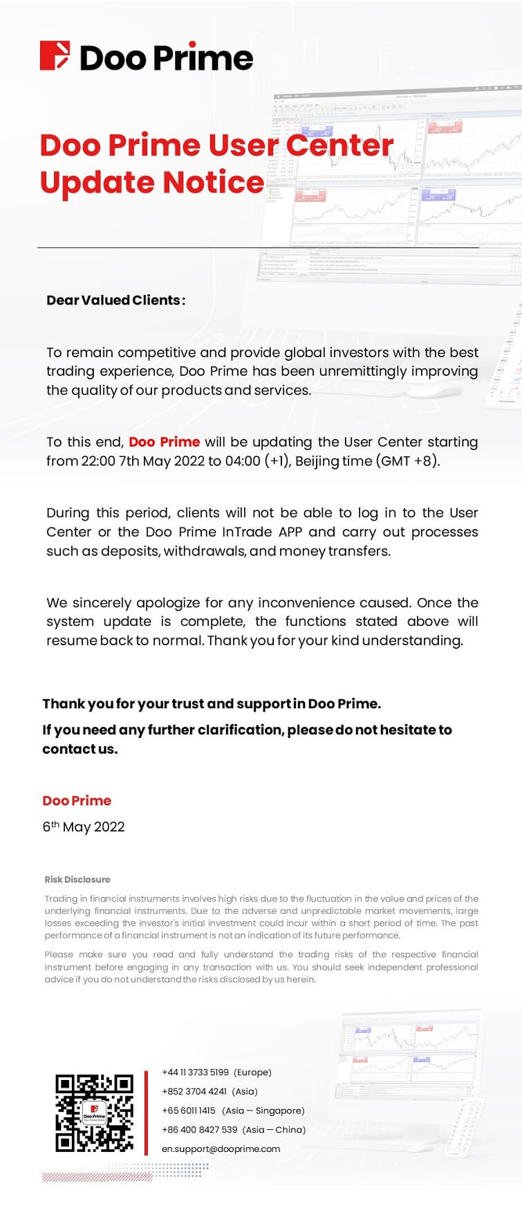 D Prime will upgrade MT4 Live 6 servers on April 18, 2026 to enhance performance. View the upgrade schedule and potential service impact.