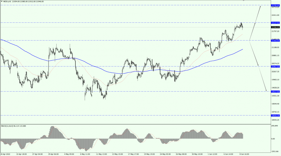 HK50 focuses on the 21450-line today. If HK50 can run stably above the 21450-line, then pay attention to the suppression strength of 22127 and 22785. If HK50 runs below the 21450-line, then pay attention to the support strength of 20467 and 19517.