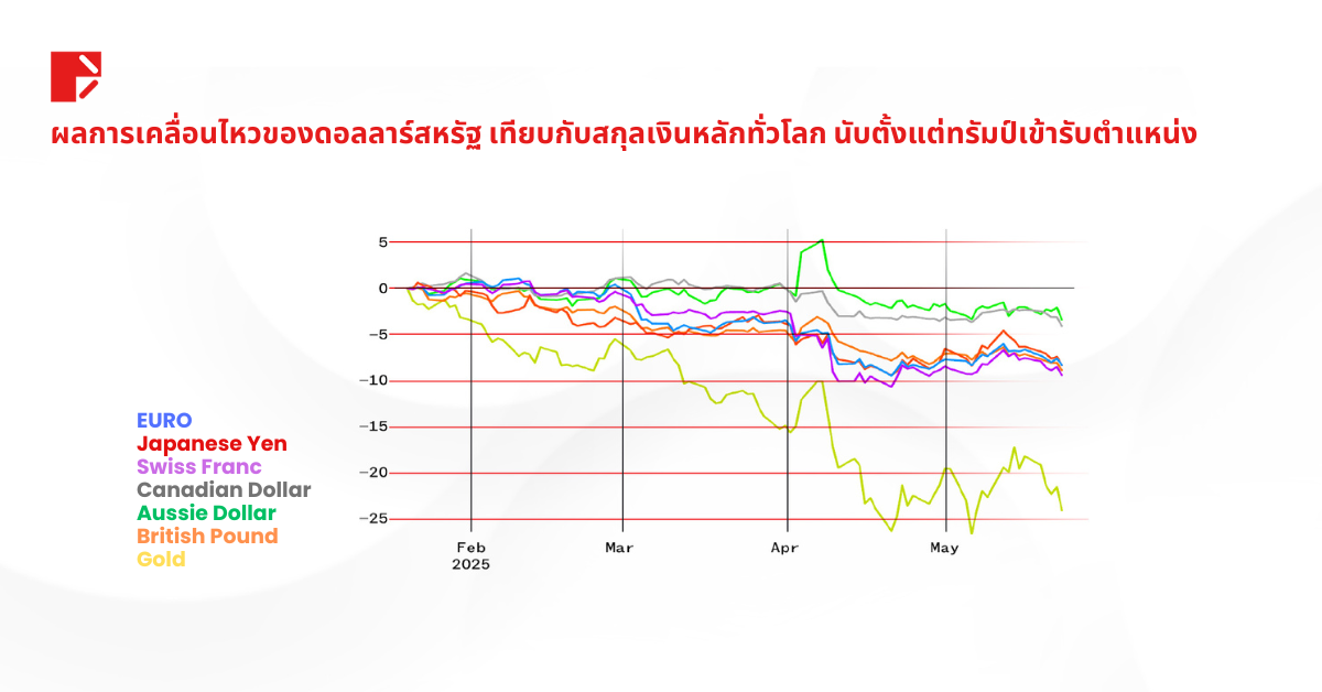 ผู้ชนะ? ทองคำแบบขาดลอย หากดอลลาร์ยังอ่อนค่าอย่างต่อเนื่อง เม็ดเงินลงทุนจำนวนมากอาจไหลเข้าสู่สินทรัพย์ทางเลือกอย่างทองคำ สินค้าโภคภัณฑ์ คริปโต และสินทรัพย์ที่ไม่อิงดอลลาร์มากยิ่งขึ้น