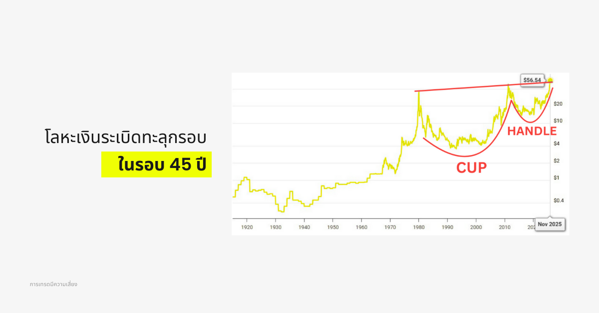 โลหะเงินได้ทะลุผ่านกรอบราคาระยะยาวที่คงอยู่มานานหลายทศวรรษ ด้วยความคาดหวังเรื่องการลดดอกเบี้ยของเฟด ความต้องการในภาคอุตสาหกรรมที่เพิ่มขึ้น และแพทเทิร์นกราฟ 100 ปีที่หาดูได้ยาก ซึ่งกำลังปรากฏชัดเจนขึ้นเรื่อยๆ ทำให้โลหะเงินกลายเป็นหนึ่งในตลาดที่ถูกจับตามองมากที่สุดในปีนี้