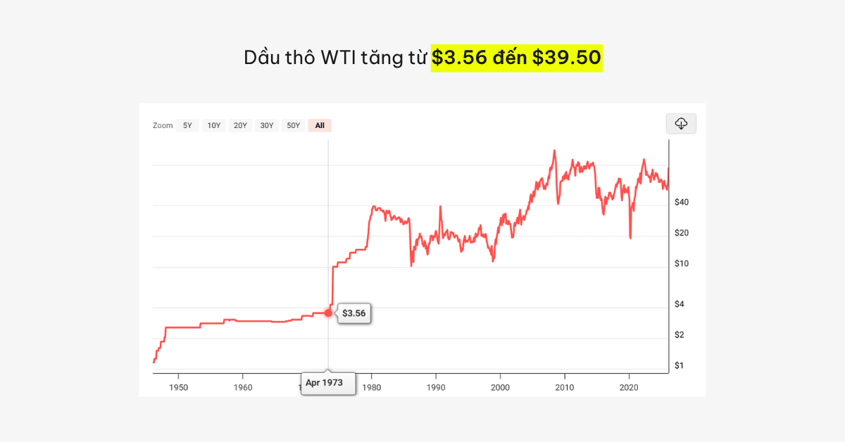 Chiến tranh Trung Đông năm 1973 đã kích hoạt đà tăng mạnh của giá năng lượng.