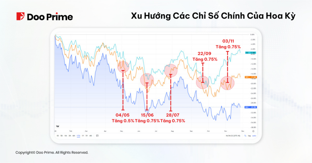 Kể từ khi Cục Dự trữ Liên bang khởi động các đợt tăng lãi suất mạnh mẽ, chứng khoán Mỹ đã chính thức bước vào giai đoạn thoái trào khi liên tục phải đương đầu với thị trường giá xuống. Kể từ đầu năm đến nay, cả ba chỉ số chứng khoán chính của Hoa Kỳ đều lao dốc thảm hại. Theo ghi nhận của chúng tôi vào thời điểm viết bài, chỉ số Dow Jones, S&P 500 và Nasdaq đã giảm lần lượt 9.36%, 20.19% và 33.01% chỉ trong năm nay.
